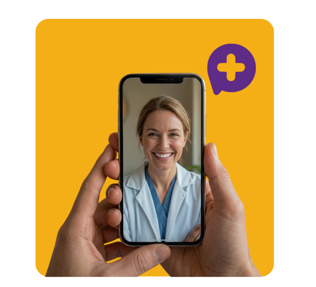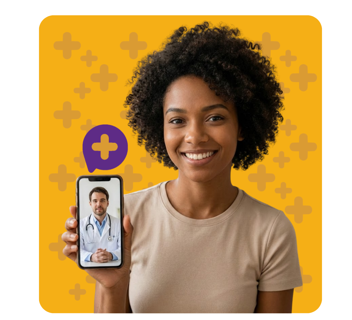 Um médico treinado vai te atender por vídeo após a triagem. Rápido, fácil e seguro